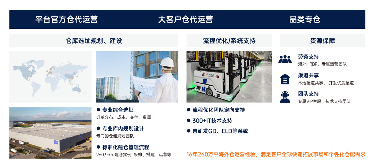 专注于出海客户专业化、行业化、差异化的实际需求,深度联结端到端供应链节点,提供面向行业、紧扣市场、贴近客户的定制仓配解决方案,助力客户快速拓展全球市场。